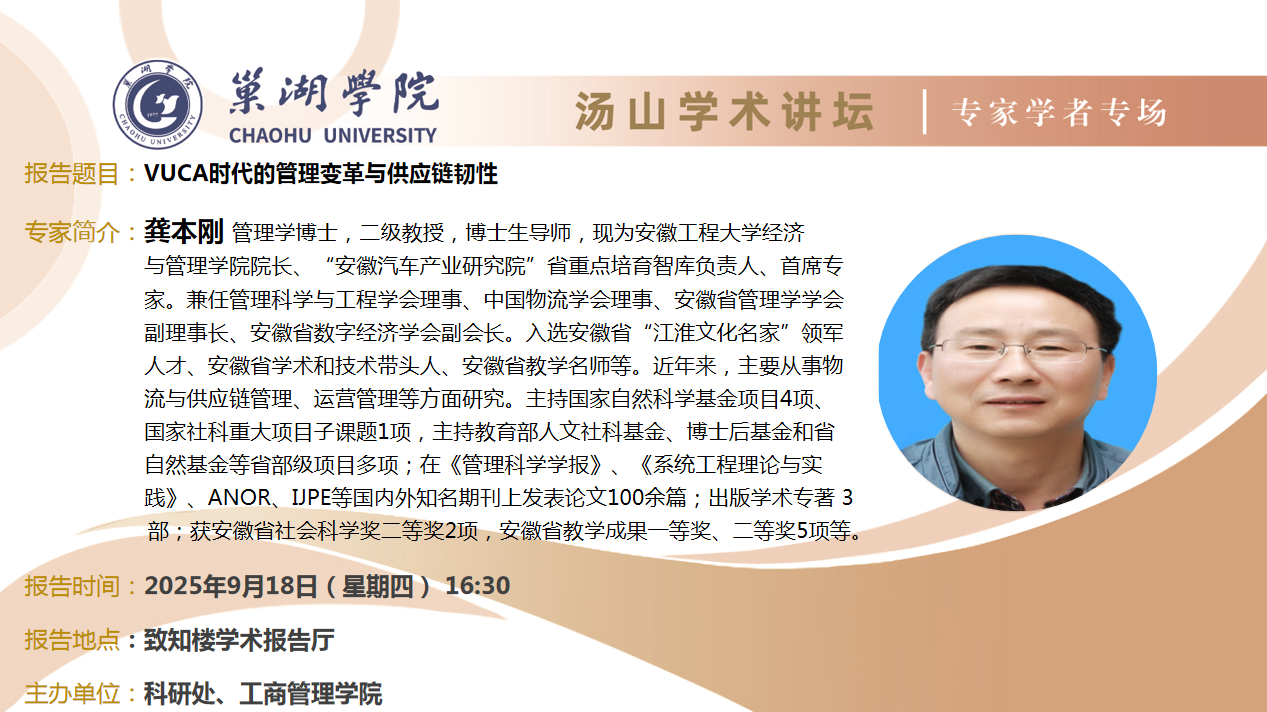 • 9月18日:安徽工程大學(xué)龔本剛教授講座